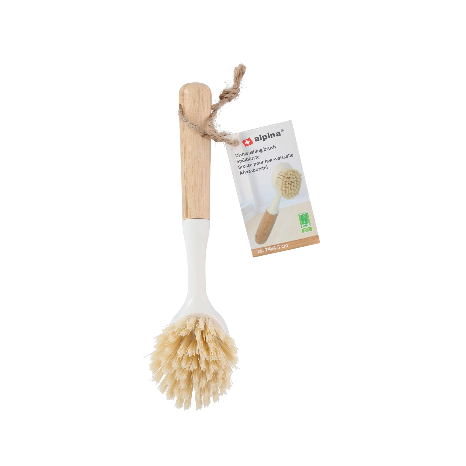 Wil jij een stijlvolle afwasborstel voor in jouw keuken? Ga dan voor deze Alpina afwasborstel van bamboe. Met de bamboehouten greep en de ronde kop met stevige haren is deze afwasborstel niet alleen prettig en functioneel, maar hij is ook een plaatje voor in je keuken! De afwasborstel is ongeveer 24×4,5 cm groot en heeft een handig ophangoog.