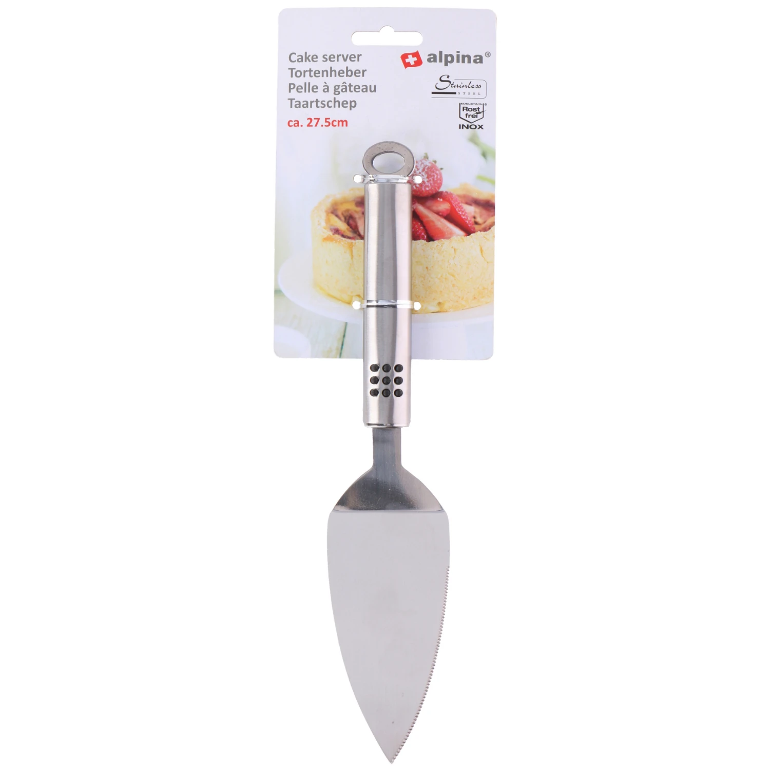 Serveer de lekkerste taartpunten op feestjes of gewoon voor bij de koffie. De Alpina taartschep is gemaakt van RVS en heeft een snijrand zodat je kleinere stukjes van gebak kunt serveren.