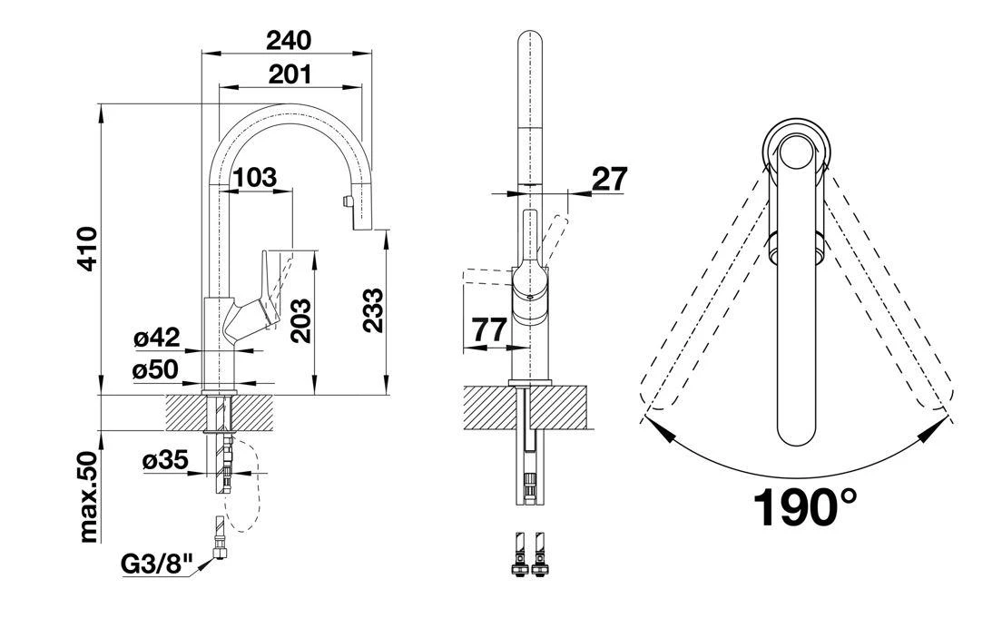- hoge draaibare uitloop, draaibereik 190°