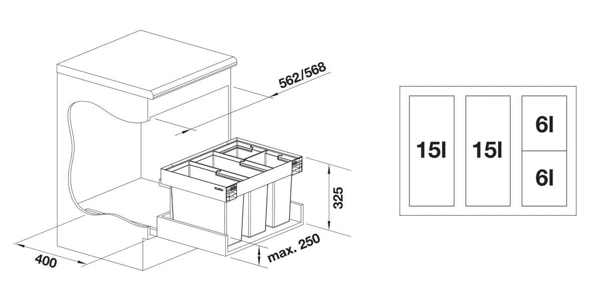 - inbouwdiepte 400 mm (binnenmaat van de lade)