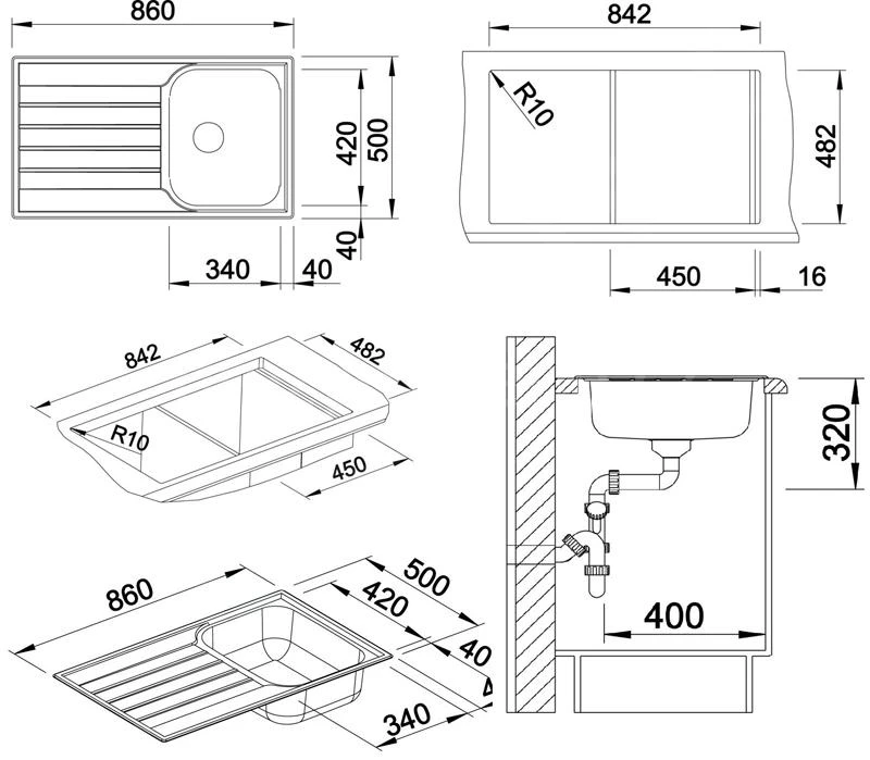 - oriëntatie spoelbak – dubbelzijdige uitvoering