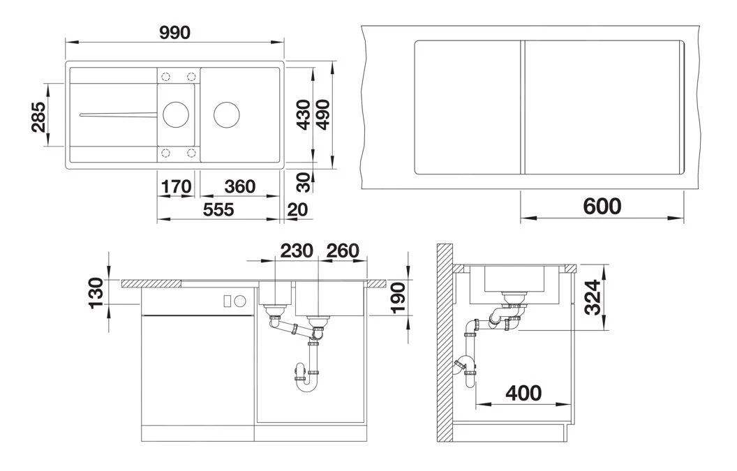 - 2x 3 1/2″ korfplug met excentrische bediening van de waste