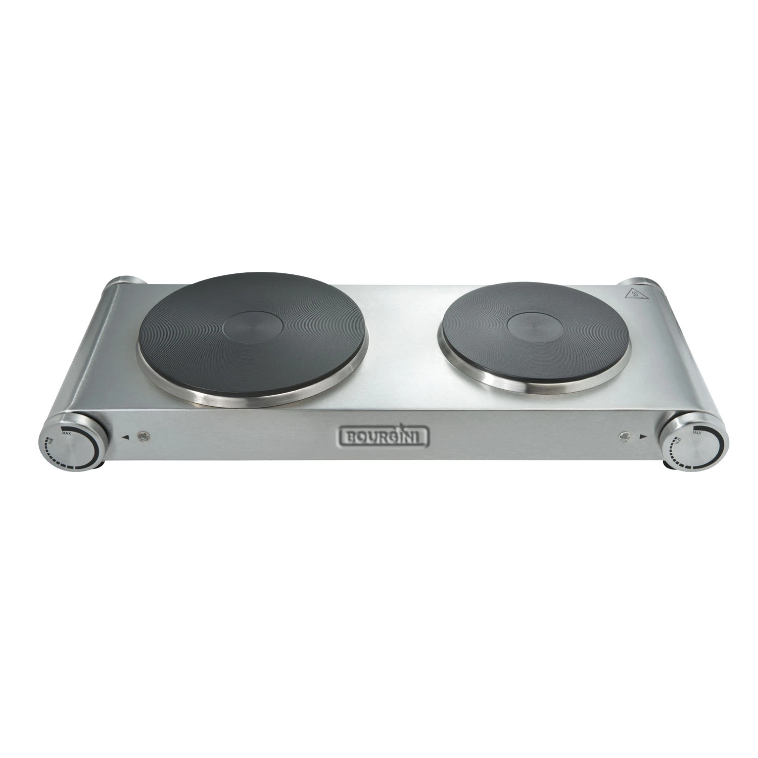 Bourgini duo kookplaat. Kookplaat me RVS design en twee kookplaten. De kookplaten hebben een diameter van 19 en 19 cm en werken op 1000 en 15000 Watt. De temperatuur is instelbaar, en de kookplaat heeft twee powerla,pjes. De kookplaat is geschikt voor alle standaardmaten pannen en heeft anti-slipvoetjes, zodat je altijd veilig kunt koken.
