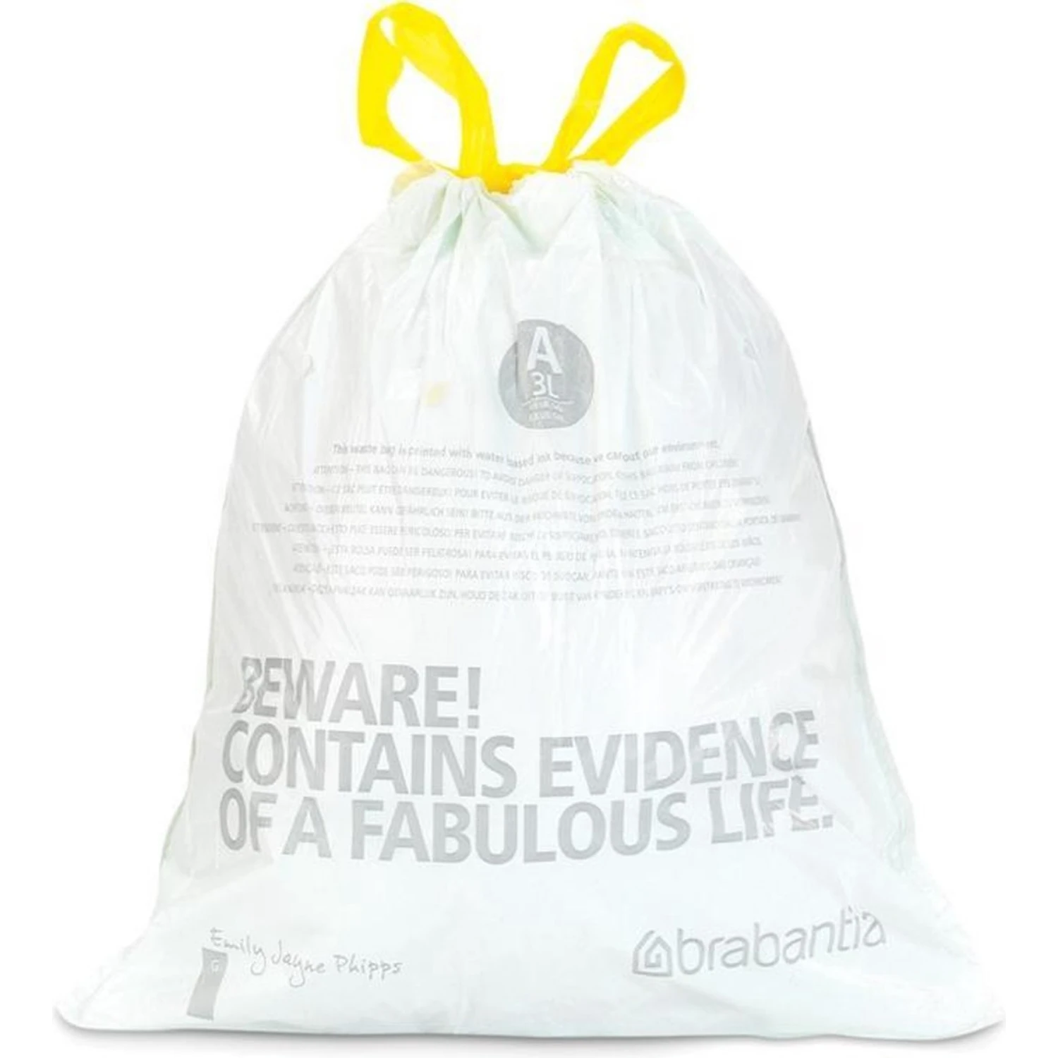 Deze Brabantia PerfectFit vuilniszakken passen perfect in de Brabantia prullenbakken van code A, met een inhoud van 3 liter. Doordat ze extra sterk zijn scheuren en lekken ze niet, en de zakken hebben een handige trekbandsluiting om de zakken uit de bak te trekken en dicht te knopen! De verpakking bevat 20 stuks.