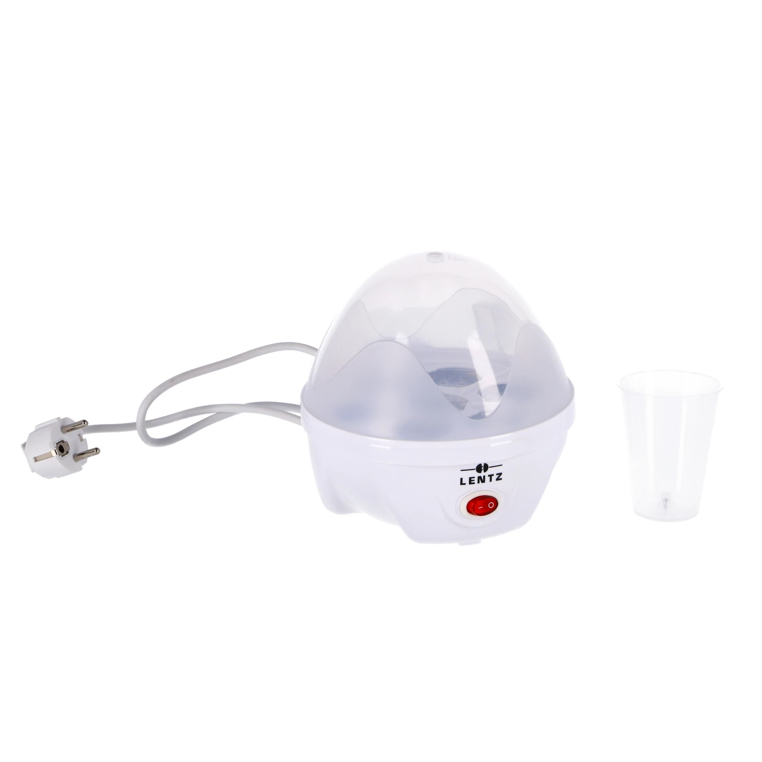 Kook tot maar liefst 7 eieren tegelijk met de Lentz eierkoker. Plaats het aantal eieren naar keuze in de koker en vul met de maatbeker het water aan. Kies dan de kookstand, van zacht tot hard gekookte eieren en wacht dan tot de automatische zoemer af gaat. De eierkoker heeft een transparant deksel, een stoomrekje en RVS verwarmingsplaat.