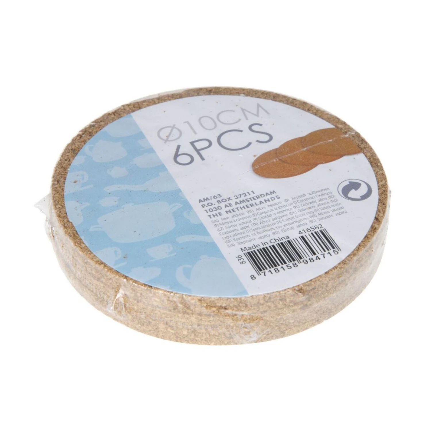 Deze set van 6 ronde onderzetters voor glazen is altijd handig om in huis te hebben. Plaats ze op de tafel voor je er een kopje of glas op zet, en voorkom vlekken of kringen op de tafel. De onderzetters hebben een diameter van ca. 10 cm en een hoogte van 3 mm, ze zijn gemaakt van kurk.