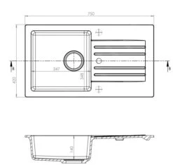 Alveus Cortina – Granieten Spoelbak 750×420 Mm, Met Draaiknopbediening, Carbon 1133778