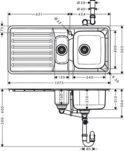 Hansgrohe Spoelbakken – Spoelbakset C71-F765-10 Spoelbak+keukenkraan, Chroom 43203000