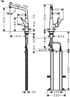 Hansgrohe M71 – Metris Keukenkraan Met Uittrekbare Handdouche, EcoSmart, Chroom 14781000