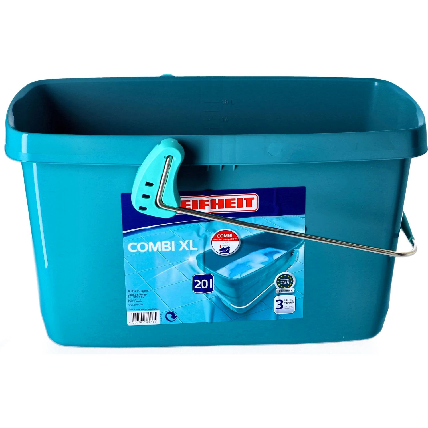 Schoonmaken wordt kinderspel met deze kunststof emmer Combi XL van Leifheit. De schoonmaakemmer is geschikt voor alle reinigingsdoeleinden en kan universeel worden gebruikt. Wie de Combi XL emmer van Leifheit koopt, profiteert vooral van zijn grootte. De emmer heeft een inhoud van maar liefst 20 liter. Omdat hij met 48 cm bijzonder breed is, is hij ook ideaal voor het uitwassen van brede dweilen. De emmer Combi XL kan worden gecombineerd met het Combi-Press dweilpers en het Combi Mop opzetstuk. Dit zorgt ervoor dat dweilen en moppen gemakkelijk kunnen worden uitgeperst tijdens het reinigen van de vloeren in huis. Het hengsel van de emmer Combi XL van Leifheit is van metaal en daardoor bijzonder stevig. De Leifheit emmer is voorzien van een kunststof handgreep, die zorgt voor een comfortabel en veilig transport. Het vuile water kan na het schoonmaken schoon worden geleegd via de uitloop van de Combi XL emmer.
