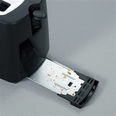 De zwarte Automatische Broodrooster van Severin heeft een koel aanvoelende behuizing, een variabele bruiningsinstelling, een kruimellade, snoeropberging en wordt automatisch uitgeschakeld wanneer brood vast is komen te zitten. Ook is er een stand om broodjes mee op te warmen. Het broodrooster werkt op 700 Watt.