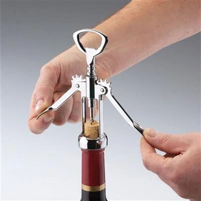 De Westmark hevelkurkenstrekken, met spiraal en ziel, is de ideale hulp bij het openen van flessen met natuurlijke of kunststof kurken. Dankzij de geïntegreerde opener opent hij ook flessen met kroonkurken. Zo werkt het: Draai de wendel in de vorm van een spil in de kurk. De hefboomarmen zwenken naar boven. Druk nu gewoon de armen naar beneden en de fles is ontkurkt.